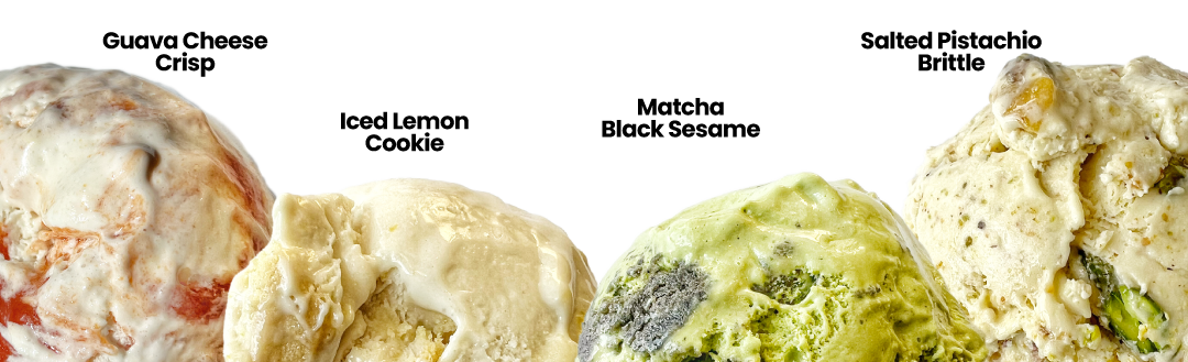 Salted Pistachio Brittle - Back by popular demand. Our classic sweet cream base steeped with salted and roasted pistachios. House-baked pistachio brittle and pistachio bits folded throughout.
